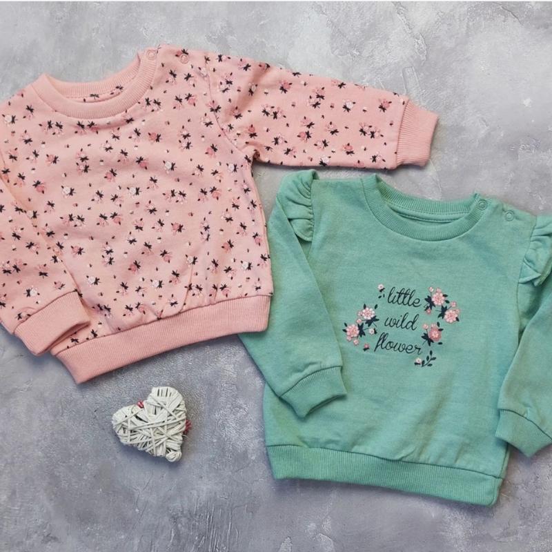 В наличии) Утепленные свитшоты ✅0-3m /62cm ✅3-6m / 68cm ✔️ розовый ✅6-9m / 74cm ✅9-12m / 80cm ✔️розовый2шт, бирюза ✅12-18m / 86cm✔️бирюза 💷195грн/шт
