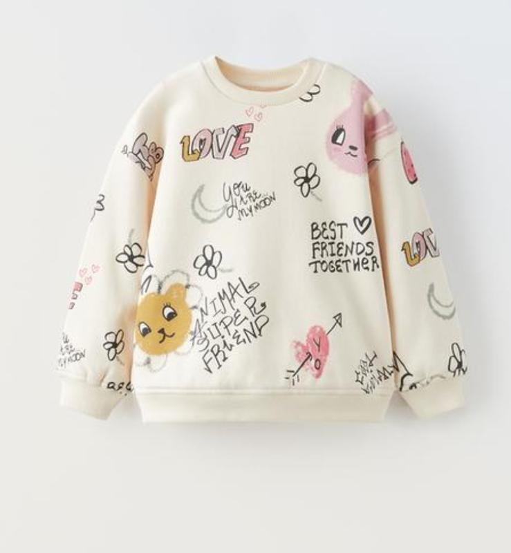 Свитшот на девочку Zara оригинал из Испании в р.80 Невероятно нежный и стильный свитшот Внутри утеплен флисом Ног-31 Длина-34 Рукав-26/21 плечо-9