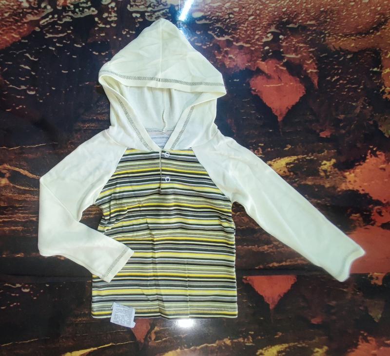 Ткань Интерлок Сверху застёгивается на две кнопки размер 28. Рост 80-86см Длина 35см. Длина рукава от капюшона 38см Полуобхват груди 27см