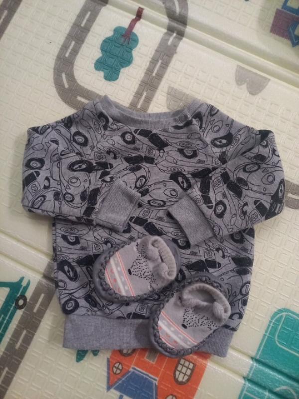 теплый свитшот и тапули для малыша возраст:3-6 месяцев замеры кофточки: длина:29.5 рукав от ворота:29 ширина войлока:50 есть ковтанные на свитшоте Отправляю укр и новой почтой) цена всего
