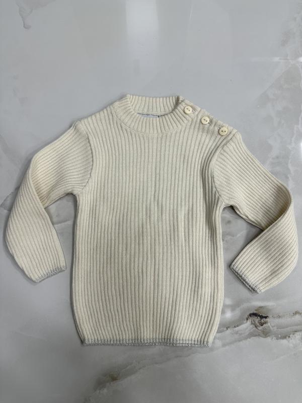 Милый свитерок на девочку в молочном цвете. Состояние идеальное. Размер указан 18мес/81см. Замеры на фото. Ткань тянется.