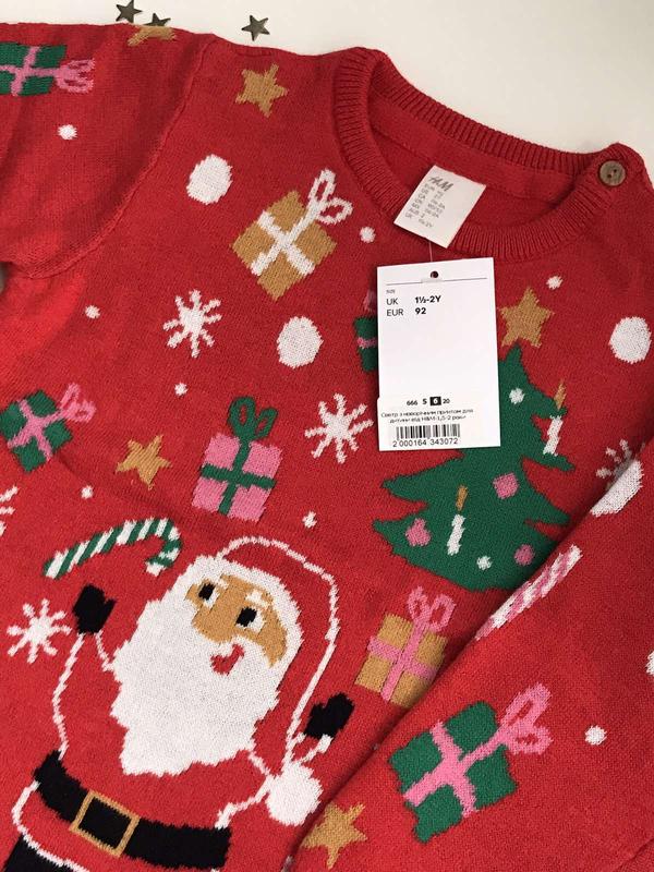 Новый мягкий вязаный трикотажный свитерик с Рождествеским принтом бренд НМ, размер 9-12 м Замеры: плечи 23 см, длина 32 см, рукав 26=8 см, полуобхват груди 29 см
