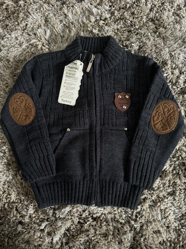 Новий турецький вʼязаний світер на блискавці. Новий, з біркою. На ліктях латки. Попереду 2 кармани. Мʼякий на дотик. На зиму - ідеально для дитинки. Можна на подарунок. Розмір вказано 80см, але реально буде на 1-2 роки