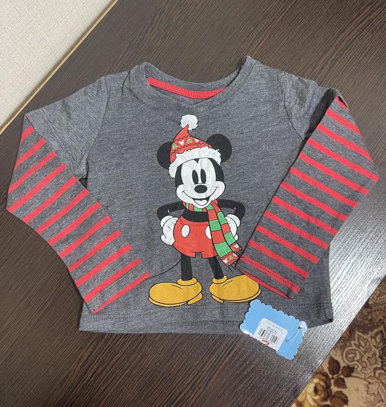 Замечательный лонг с новогодним Микки на мальчика 80 см 9-12 мес