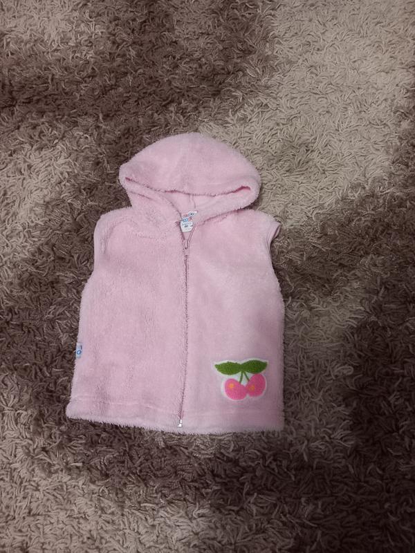 Махровая жилетка с капишоном на молнии. Не одели ни разу, подарили нам, но была маленькой.