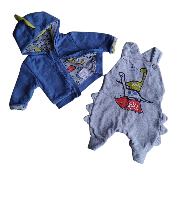 Комплект на 0-3 месяцев. Состояние отличное. Длина кофты на х.б подкладке 24 см. Ширина 21 см. Рукав 18 см. Длина комбинезона 31 см. Ширина 24 см. Фирма Mothercare. 💙 ЦЕНА 80 ГРН 💙