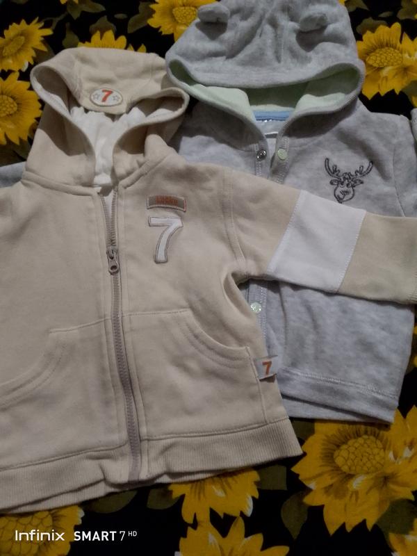 _кофточка с капюшоном фирма-Lucky 7 62см(на 2-4мес.) цвет-белый,бежевый 100%-cotton-бавовна защипывается на замочек _кофточка с капюшоном(на капюшоне есть ушки) фирма-Ergee 62см(на 2-4мес.) цвет-светло-серый защипывается на заклепки 80%-cotton-бавовна 20%-polyester-полиэстер защипывается на заклепки в очень хорошем состоянии!
