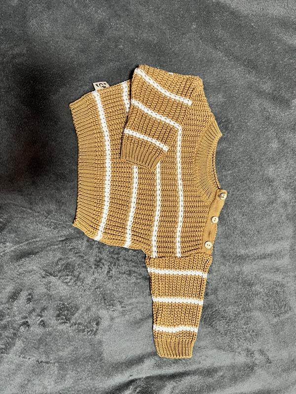 Кофта плетеная в полоску 0-3 мес оверсайз с пуговицами на плече. Стан идеален, одевали 1 раз