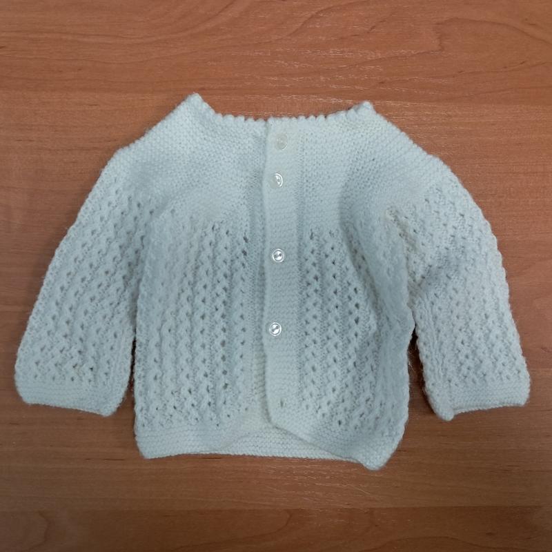 Очень красивая кофта для новорожденных. Мы совсем не одевали. Ну прямо очень маленькая, хотя тянется.
