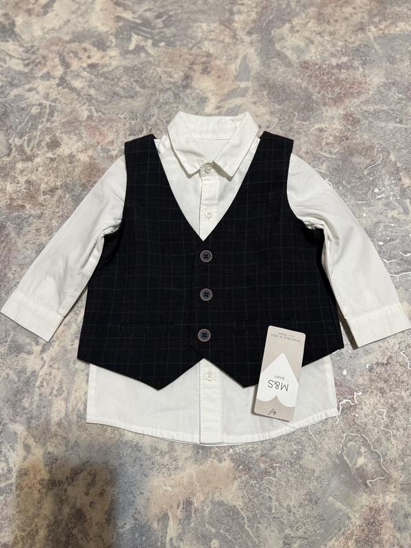 Рубашка: длина - 34см., плечи -.20см., рукав - 23см., ПОГ - 25см., ПОТ - 26см., ПОБ - 27см. Жилет: длина - 29см., плечи - 21см., ПОГ - 28см., ПОТ - 29см