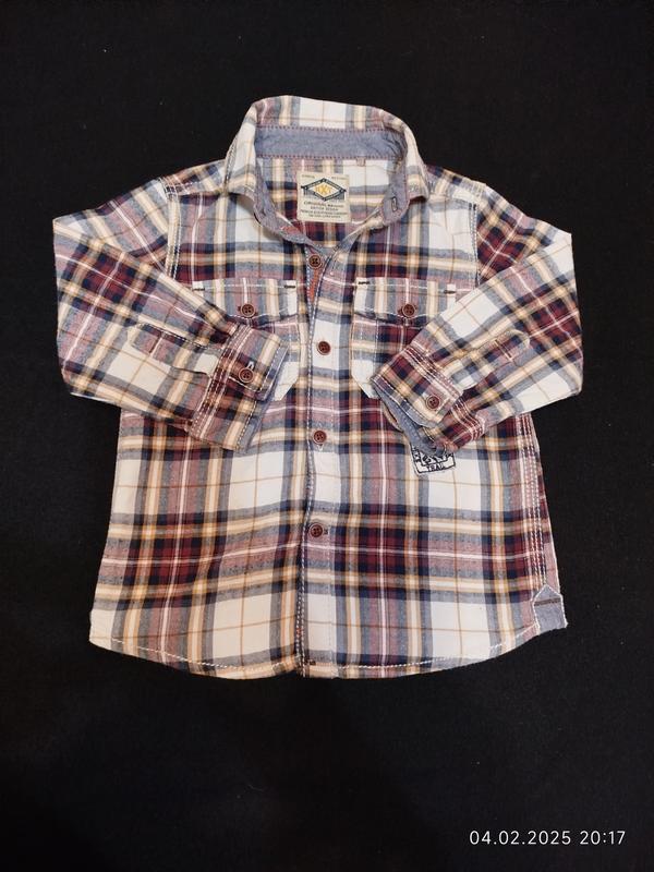 Очень классная и стильная рубашка Next в отличном состоянии на ребёнка 9-12 месяцев. Длина изделия по спинке от плеча 36 см, от плеча до плеча 24 см, полуобхват груди 28 см, длина рукава 27 см. Ткань хлопок, плохо тянется. Модель 5845