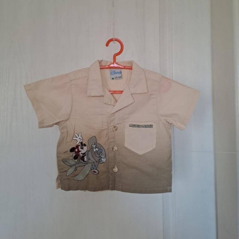 Бренд- Disney. Рубашка для мальчика 2- 4 мес. Хлопок-100 %. Состояние отличное. Замеры: Длина по спинке-30 см. Ширина- 28 см. Прямая.
