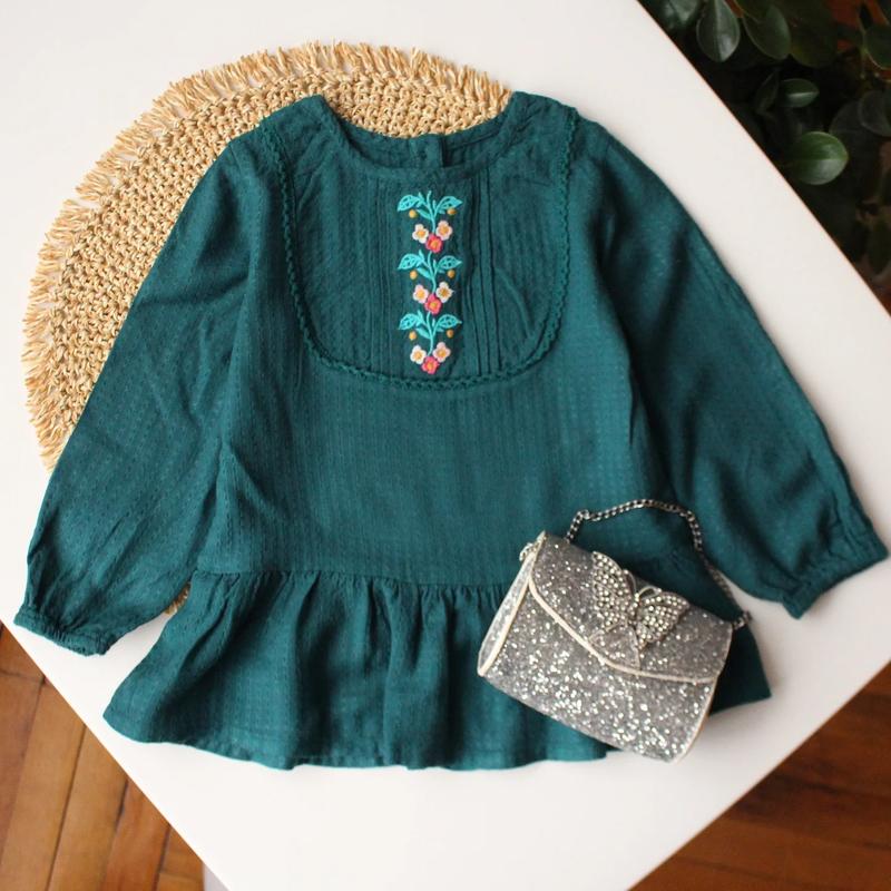 Изумрудная блуза из вискозы с вышивкой matalan и девочку 18-24 мес