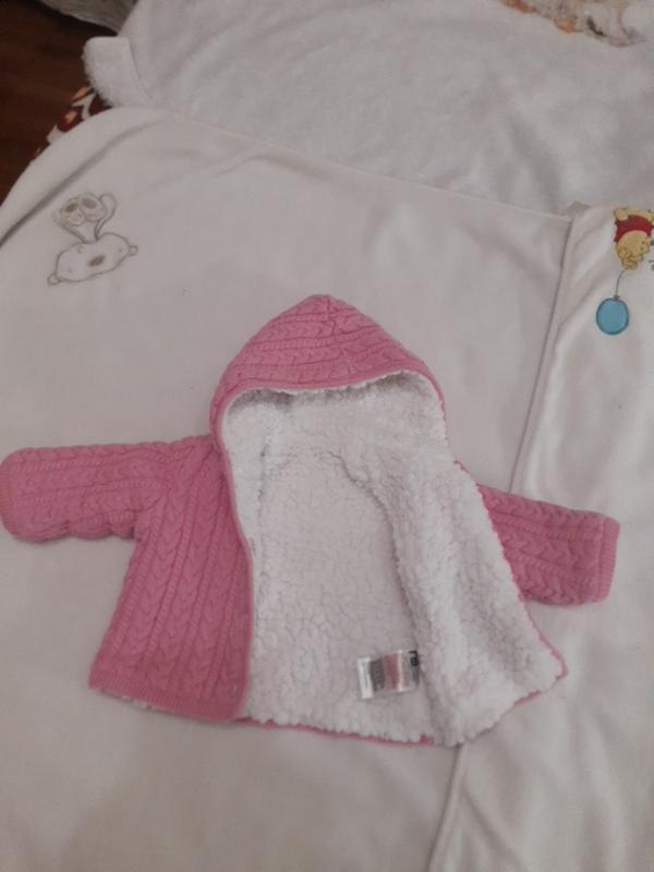 Кофта,,mothercare"в идеальном состоянии,теплая,в середине искусственный мех- барашка белоснежная-100%полиэстер, ,зверху-100% натур. катон , на гудзиках ,з капюшоном. Размеры:: От воротника до низа (по спинке)-25см. От воротника до конца рукава-20,см. От плеча до конца рукава-20см. от проймы (под рукой) до конца рукава-14см. От проймы до низа-14см. Полуобхват(об,ем)-25см. Талия-25см. Низ-25см. Плечи-19.5см. Девушке-0-3мес/59/40