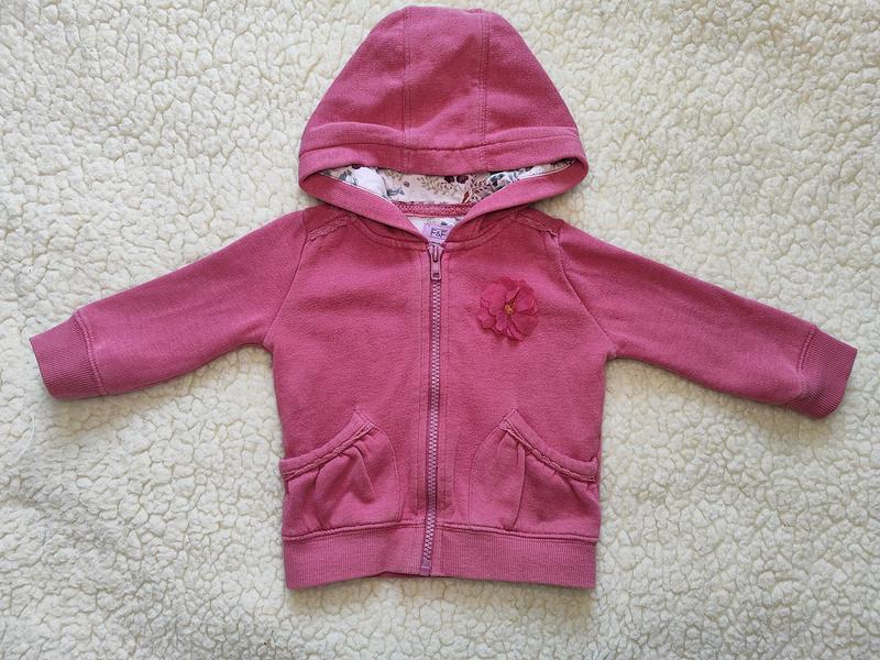 Кофта для дівчинки Стан: ідеальний На вік: 9-12 місяців На зріст: 74-80 см Сезон: Весна, осінь, зима Матеріал: 60% бавовна, 40% поліестер Утеплювач: поліестер Фірма: F&F Виміри: Довжина: 31 см Ширина по грудях: 28 см Ширина по плечах: 26 см Довжина рукава від плеча: 25 см
