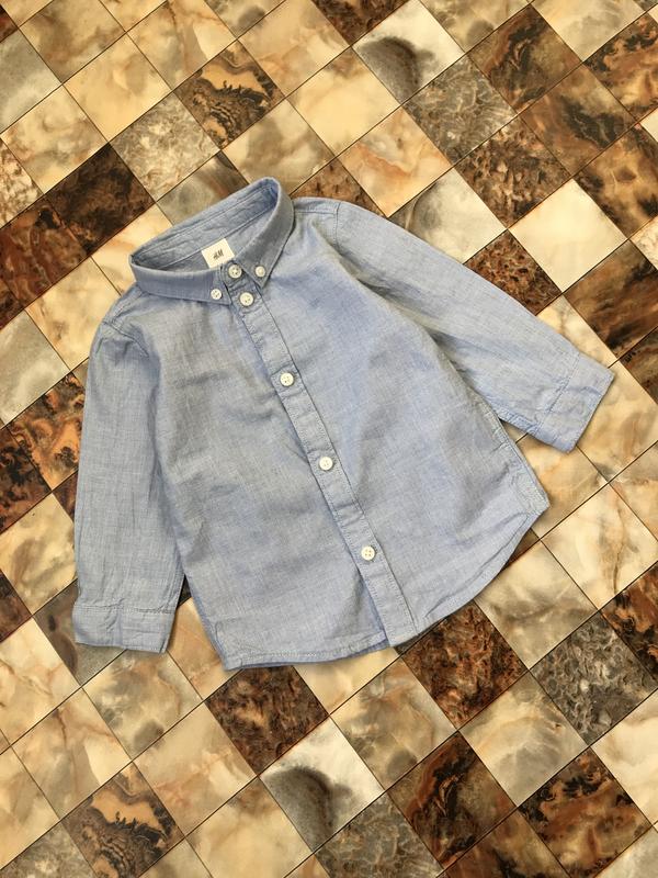 Рубашка H&M на 6-9 месяцев (74-80см) 100%котон состояние идеально без пятен и катышей длина 35 ширина 27 рукав 26 🌵Отпрашиваю новой почтой, вукр-почт. 🌵Оплата на карточку или накладной платеж с предоплатой 150 грн. 🌵Возвращение и обмен нет!