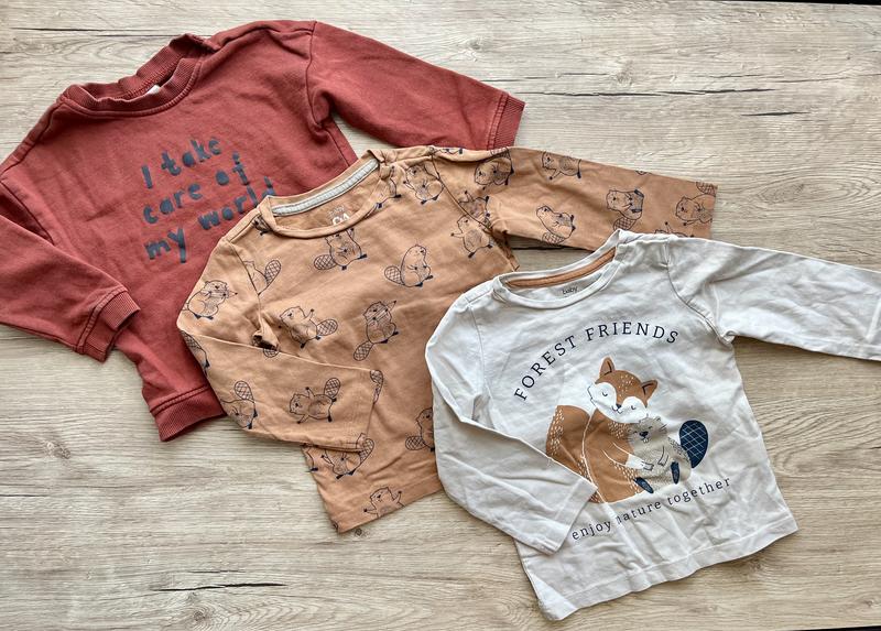 Три кофточки, свитшот и лонгсливы 86см 12-18м