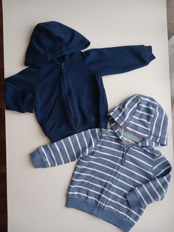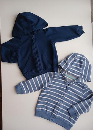 Набор кофтинок на мальчика 6-9 мес, 68-74 см. В идеальном состоянии, синяя на флисике, другая не утепленная трехнитка.