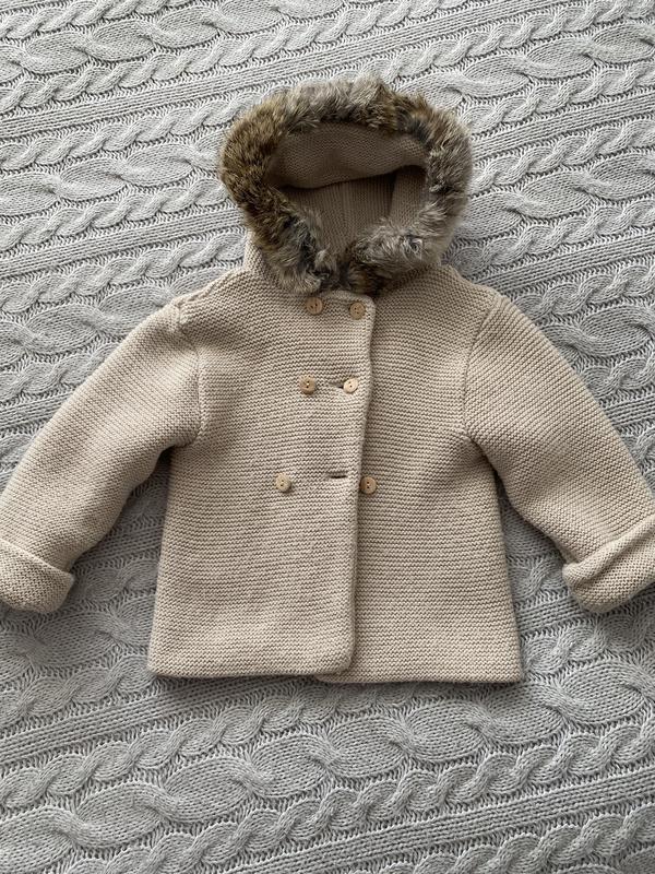 супервая кофточка на маленькую принцессу, в красивом бежевом цвете, опушка из кролика