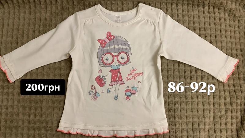 Розмір: 86–92 см Ціна: 200 грн Легка кофта з довгим рукавом, зручна для садочку або прогулянок. Яскравий принт.