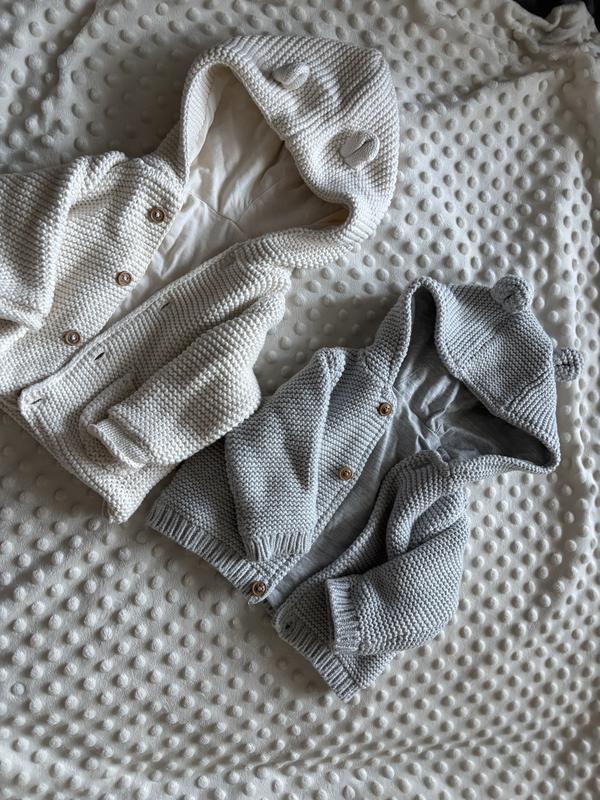 Дуже круті вʼязані кофтинки на немовлят, по бірці 0-3, та ми носили майже до 6 місяців . Ціна вказана за одну кофтинку -140 грн Якщо берете дві, то вартість дешевша- 240 за дві.