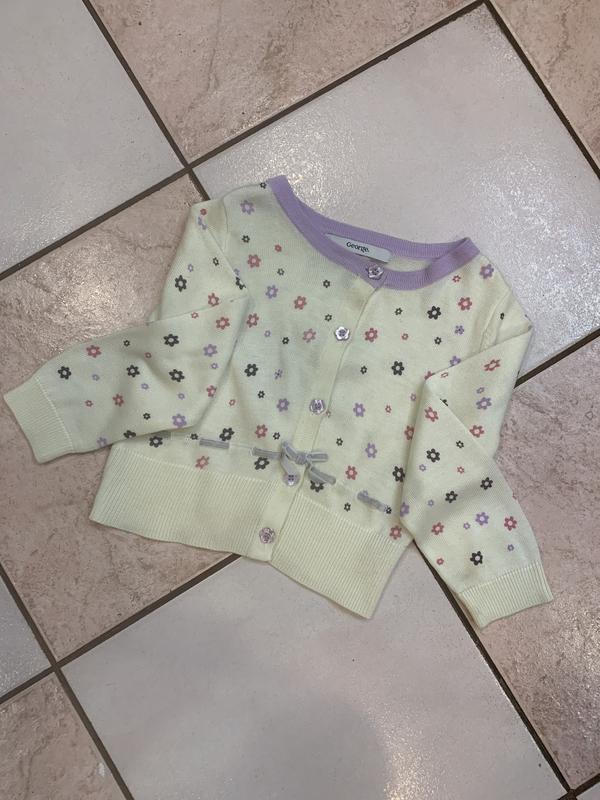 Кофточка отличного качества, цвет молочный с пуговками цвета лаванды, акрил