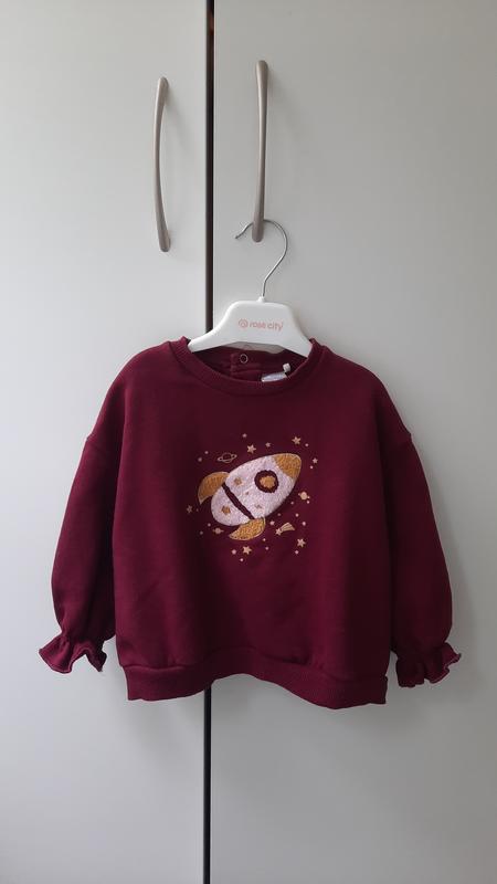 Стильный теплый свитшот для девочки в отличном состоянии размер указан 92, подойдет ориентировочно на 86-92 ( 1.5 -2 года), при необходимости могу сделать замеры