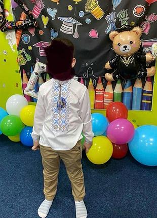 Гарна якісна вишиванка на хлопчика! Стан:Ідеальний, вдягали 2 рази! Без дефектів! Тканина приємна до тіла! На рукавах кнопки На 116-122 зріст Заміри- Плечі: 31 см, Довжина: 49-50 см, Ширина: 38 см Відправлю по передоплаті на картку
