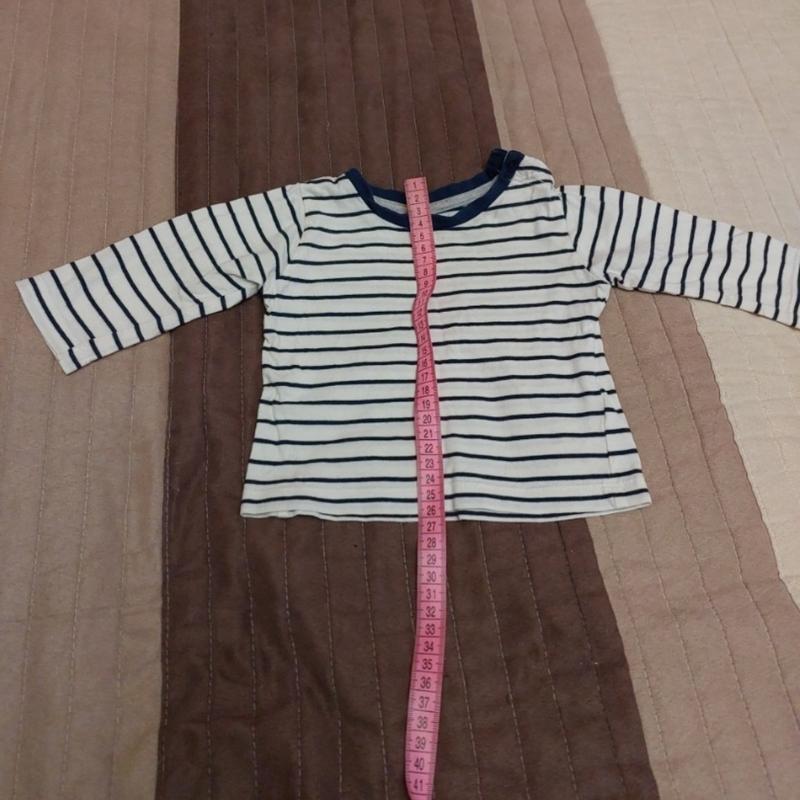 В хорошем состоянии. Бирки с размером нет, ориентируйтесь по замерам. От 6 до 9 месяцев.