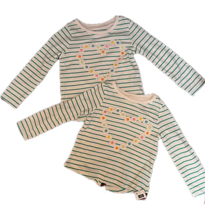 Ці затишні кофтинки для дівчинки 6-9 місяців мають стильний дизайн з горизонтальними зеленими смужками на світлому тлі та ошатним серцем, прикрашеним кольоровими квітковими аплікаціями. Виготовлені з м’якої тканини, вони ідеально підходять для комфорту малечі та додають ніжності до повсякденного гардеробу.