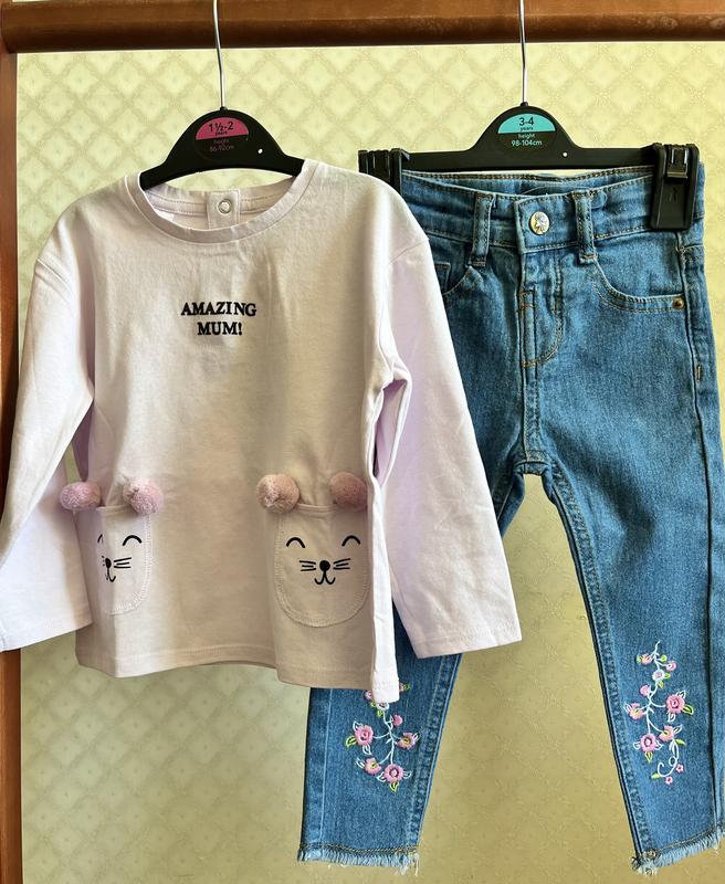 Mango реглан розовый, хлопок, 12-18м Джинсы 12-18м Цена за комплект!