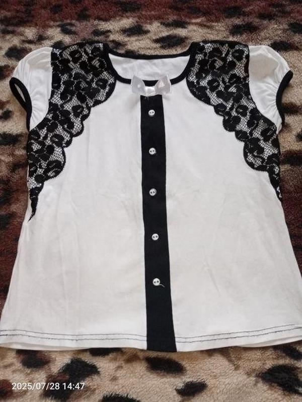 📌Состояние: очень красивое, без пятен, б/у Белая кофточка с черными вставками и красивым кружевом на плечах. Идеальна для школы или просто на каждый день. Ткань мягкая и приятная к телу. ✨Красиво смотрится с джинсами или юбкой ✨Аккуратный вид ✨ Не парить легка