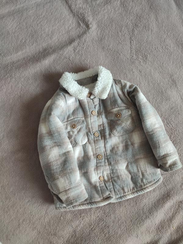 Рубашка теплая детская в клетку, на пуговицах, 6-9 месяцев.