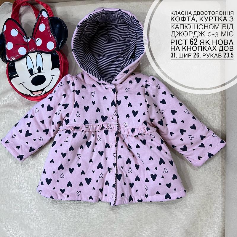 кофта з капюшоном на кнопках, вітровочка, в сердечко на дівчинку 0-3 міс ріст 62 від Джордж стан як нова б/б