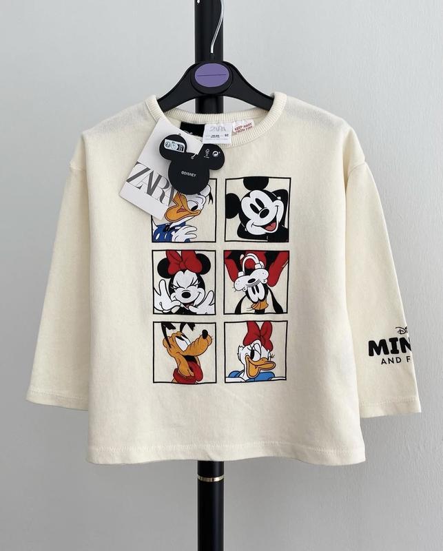 Реглан лонгслів кофта світшот з міккі мінні маус Zara,Оригінал!Привезена з Іспанії ✔️Дуже крута кофтинка крой овер ✔️Малюнок по тканині💥не наліпка! ✔️100%бавовна ✔️Тканина двониточка петелька Розмір ✅ 18-24міс(на зріст 92)повномірна! Заміри 👇 Довжина 39см Ширина 33см Рукав від горловини 39см 💳Ціна 480грн