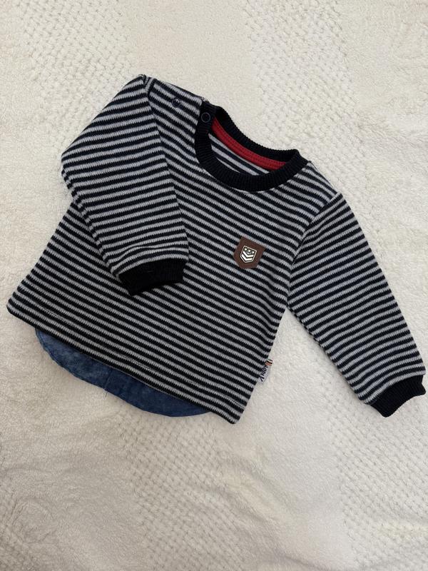 Светр для хлопчика з імітацією сорочки знизу . Має кнопки на горловині. Розмір на 3-6 міс Замір ОГ 24 см Довжина рукава від плеча 22 см Довжина по спині 26-29 см