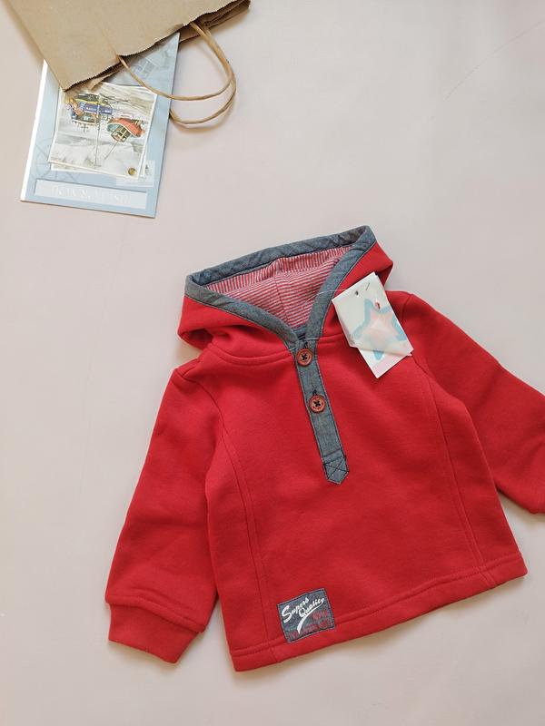 💚🩷Теплящий, Яркий свитшот с капюшоном для мальчика от премиального бренда 👌 капюшон на коттоновой подкладке, снаружи и внутри ну очень теплый 🧷 По бірці на 12 міс 📌 длина 31.5 см, полухват груди 27 см, длина рукава 26 см
