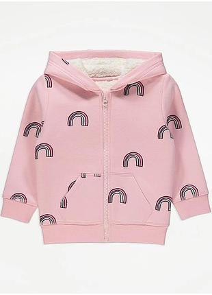 Размеры: 1-1.5 Yrs. Тёплое худи с капюшоном, внутри шерпа. В рукавах внутри флисовый начёс. Замеры: 1-1.5 Yrs: длина – 38 см, ПОГ – 34,5 см, длина рукава от плечевого шва – 30 см, ширина плеч – 27 см. Размерная сетка от George: 1-1,5 Yrs: 80 - 86 см