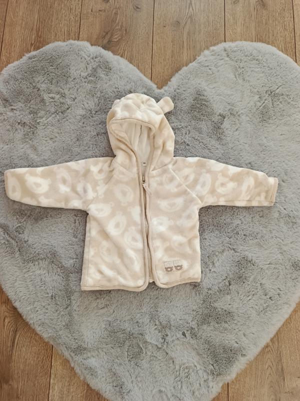 Теплая кофта с капюшоном и милыми ушками на размер 68, унисекс.