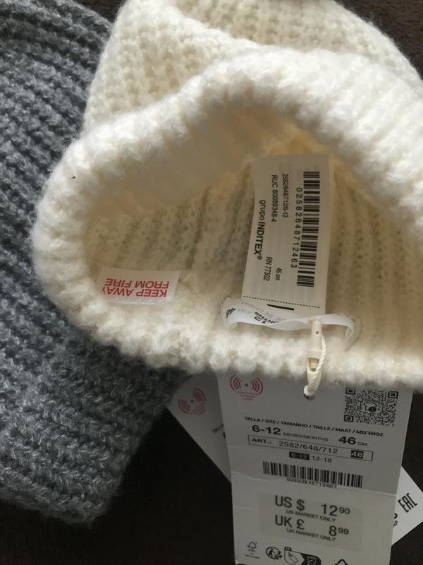 Нові шапочки Zara на вік пише 6-12 місяців але мені здається що вони маломірять трішки на 6 місяців ідеально буде. Ціна вказана за одну шапочку
