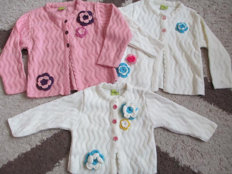 Одним комплектом за 100 грн. три вязаных кардигана для девочки, белый на 1 год, белый и розовый на 3 г.