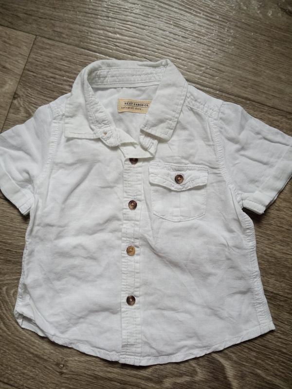 Белая рубашка с коротким рукавом, в составе хлопок и лен