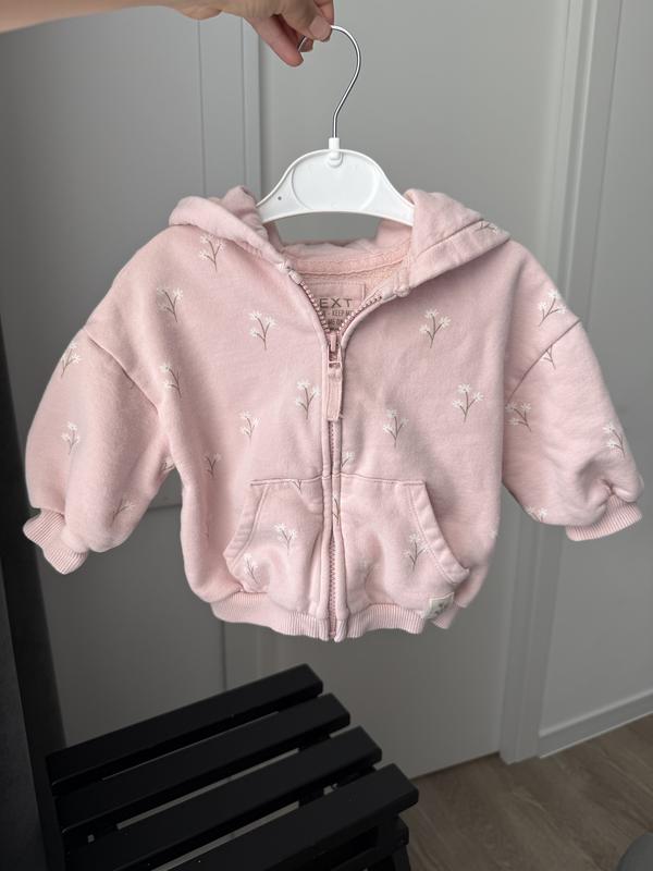 Класна кофта від Next, в гарному стані, без дефектів. Довжина - 32 см Довжина рукава від шва - 16 см (від капюшона 28 см) Пів обхват грудей - 34 см Дивіться також інші мої оголошення. Багато одягу на дівчинку від Next, Little Angel, George, Reserved, Mamalish.