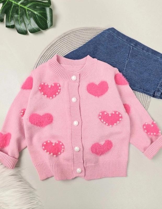 Детская кофточка из сердечка вязаная кофточка сердечки розовая для девочки маленьких девоч...