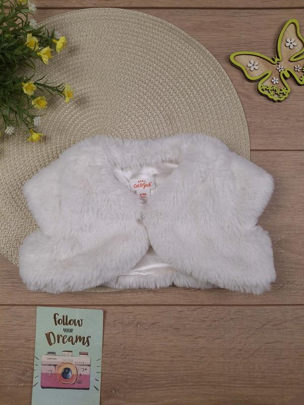 Детская плюшевая белая накидка балеро 6-9 мес меховая для девочки