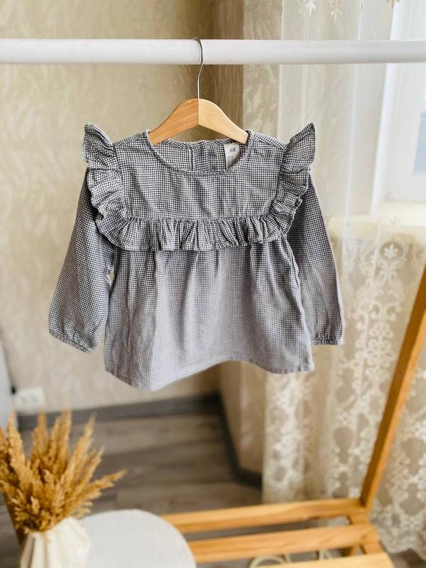 Чорно біла блуза на 18-24 місяців. (Заміри:довж 38 см, шир 30 см, рукав 33 см). Стан ідеальний. 💰Ціна - 140 грн.