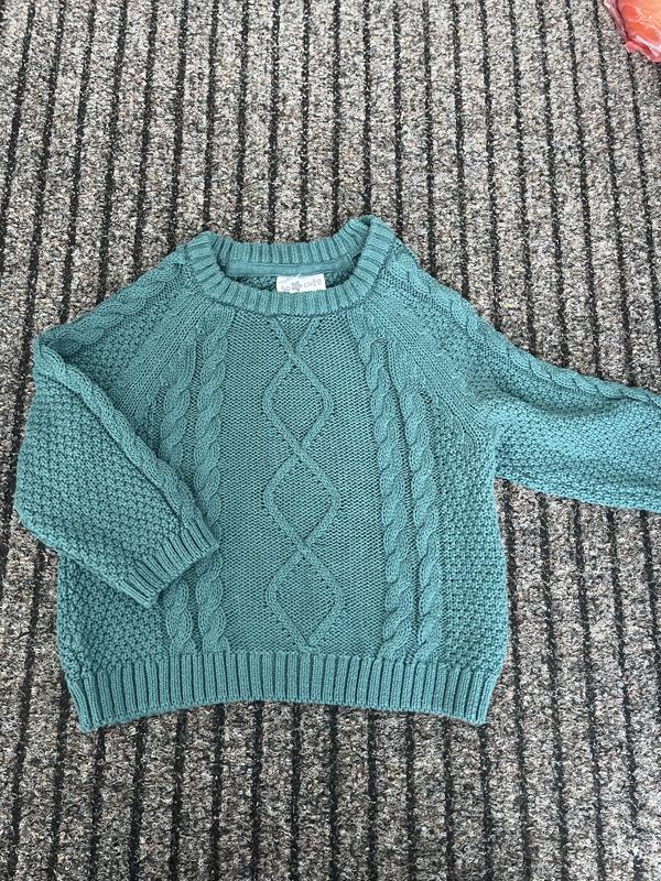 Продам дитячий зелений светрик 80 розмір (орієнтуйтесь по замірах) Заміри: • Довжина виробу — 32 см • Довжина рукава (від горловини) — 34 см • Напівобхват грудей — 30 см Стан чудовий, без дефектів. Теплий, м’який, гарна щільна в’язка. Стильний узор спереду, виглядає дуже акуратно.