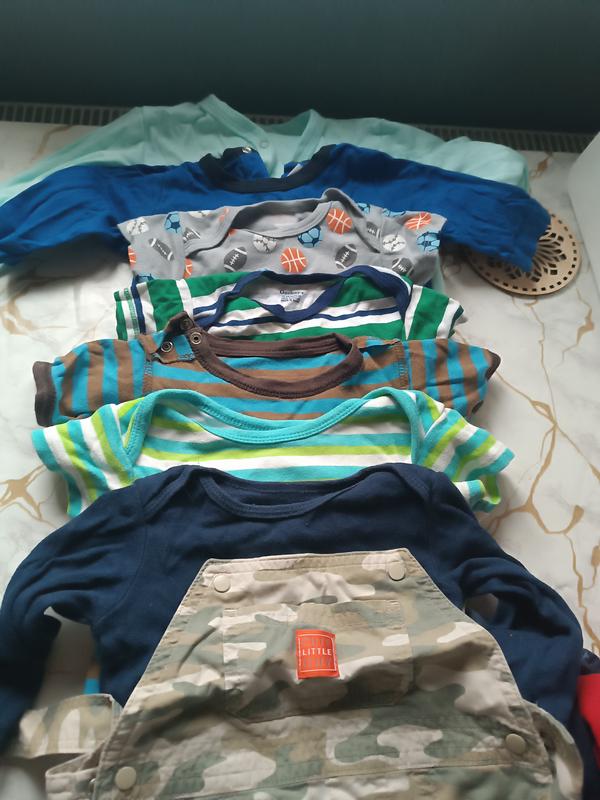 Продам одним лотом ,4 бодіка,3 футболки,1 комбез шортіками на кнопочках.діткам от 6 міс,до 1 рочку.