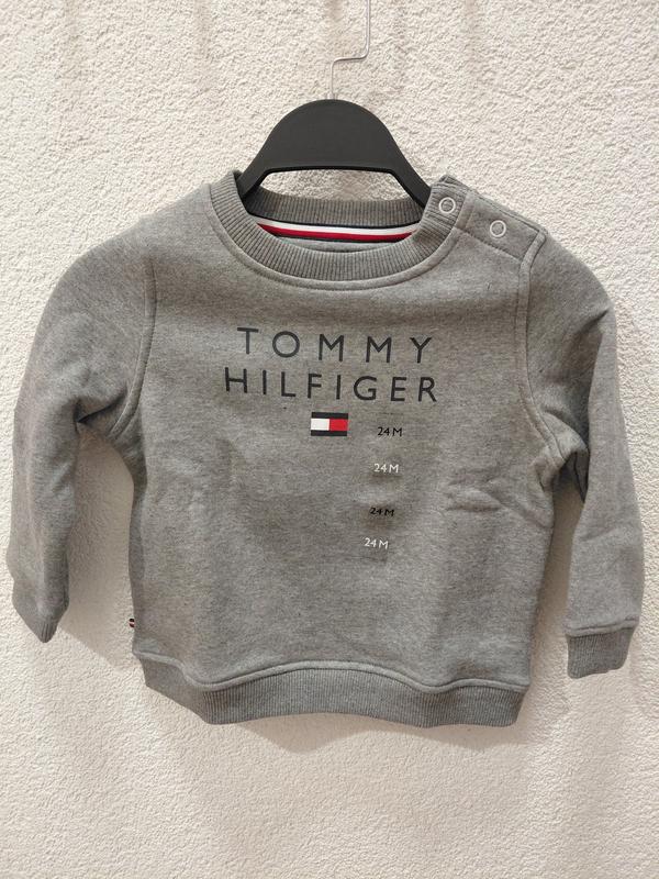 серый детский свитшот Tommy Hilfiger с логотипом-прапором.