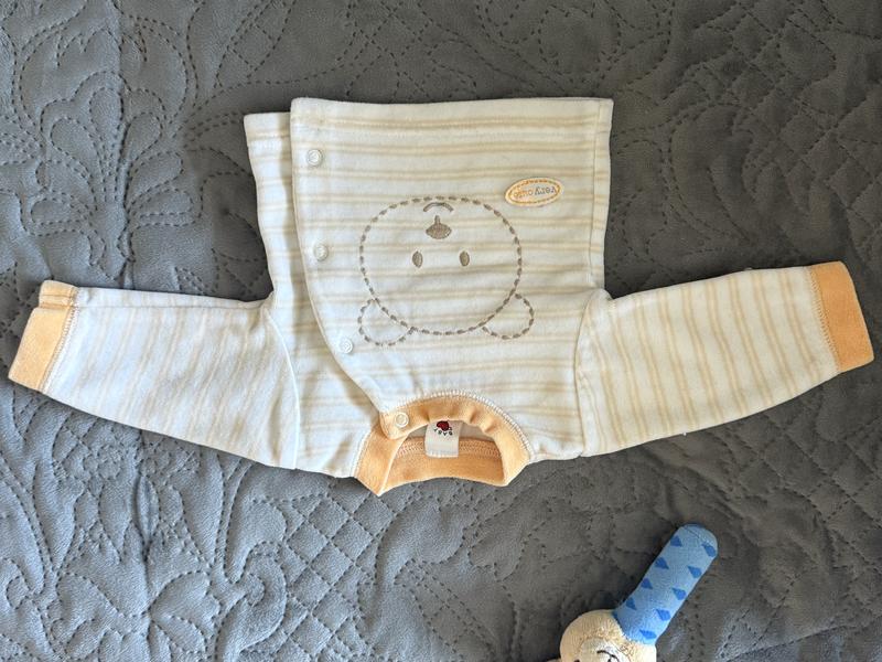М’яка та приємна до тіла, ідеальна для прохолодної погоди. Зручні кнопки - легко одягати й знімати. Ніжний дизайн з ведмедиком 🐻 ▫️ Стан: новий ▫️ Матеріал: бавовна ▫️ Колір: молочний з бежевим ▫️ Довгий рукав ▫️ Без дефектів